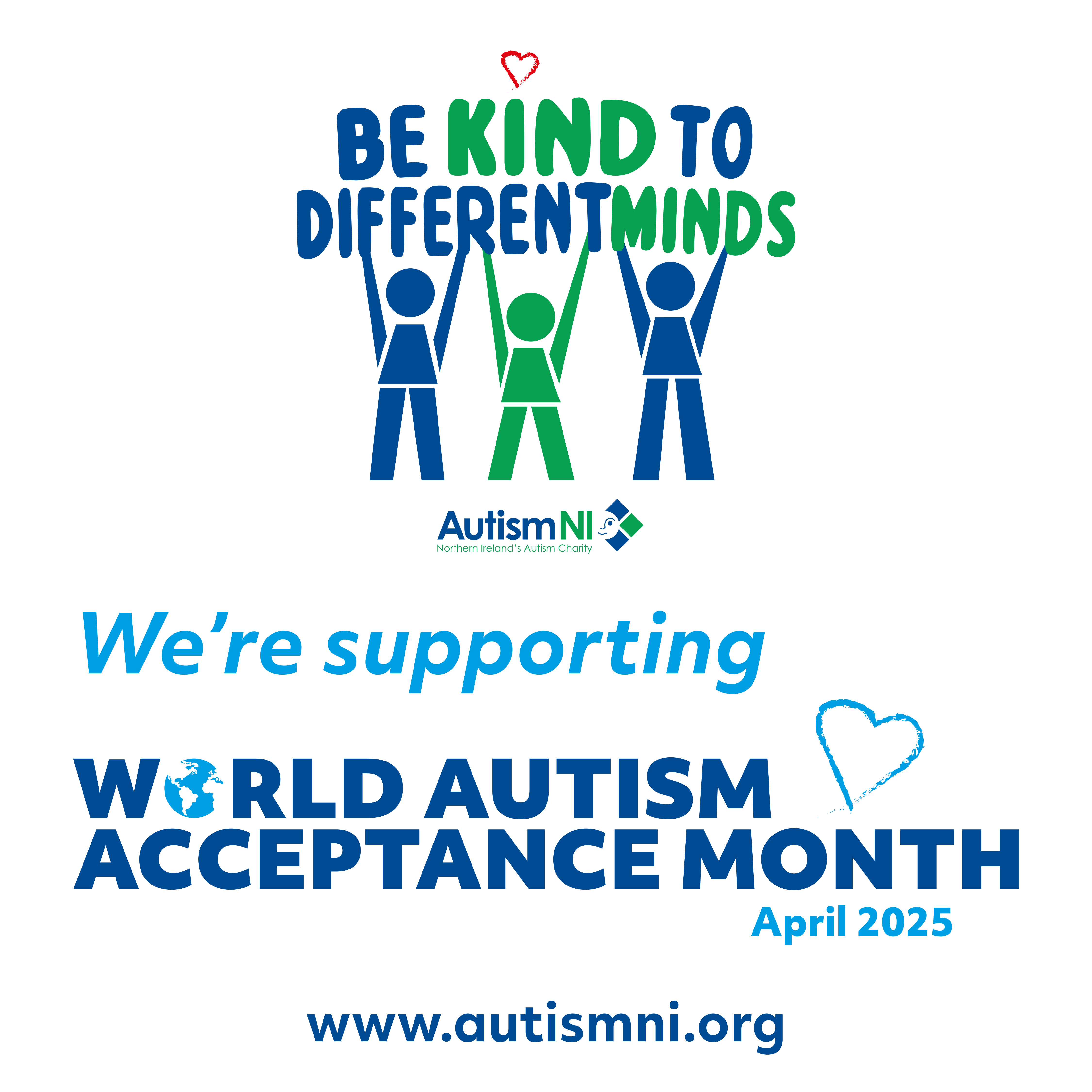 Share our important message ‘Be Kind To Different Minds’ on social media this World Autism Acceptance Month (April 2025).